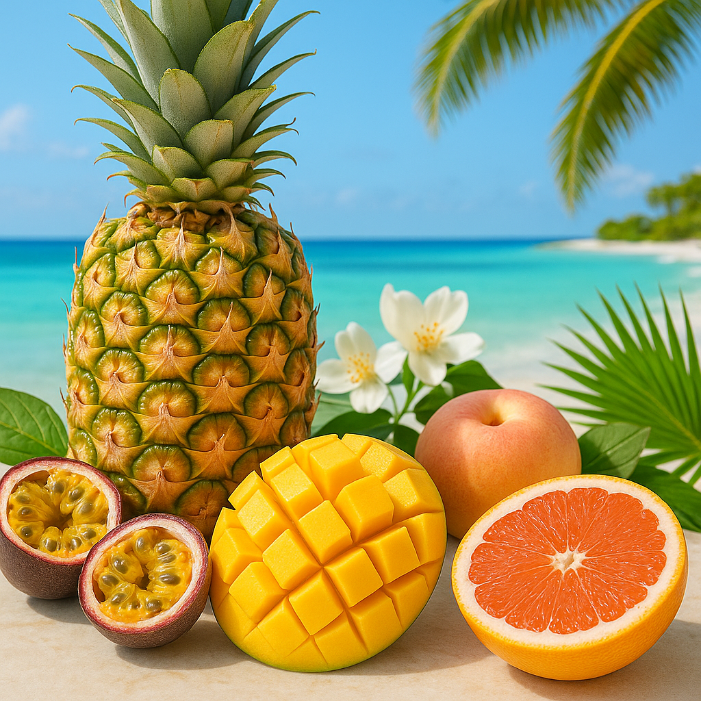 A tropical and sunny blend of pineapple, passionfruit, and mango transports you to the idyllic beaches of the Bahamas.