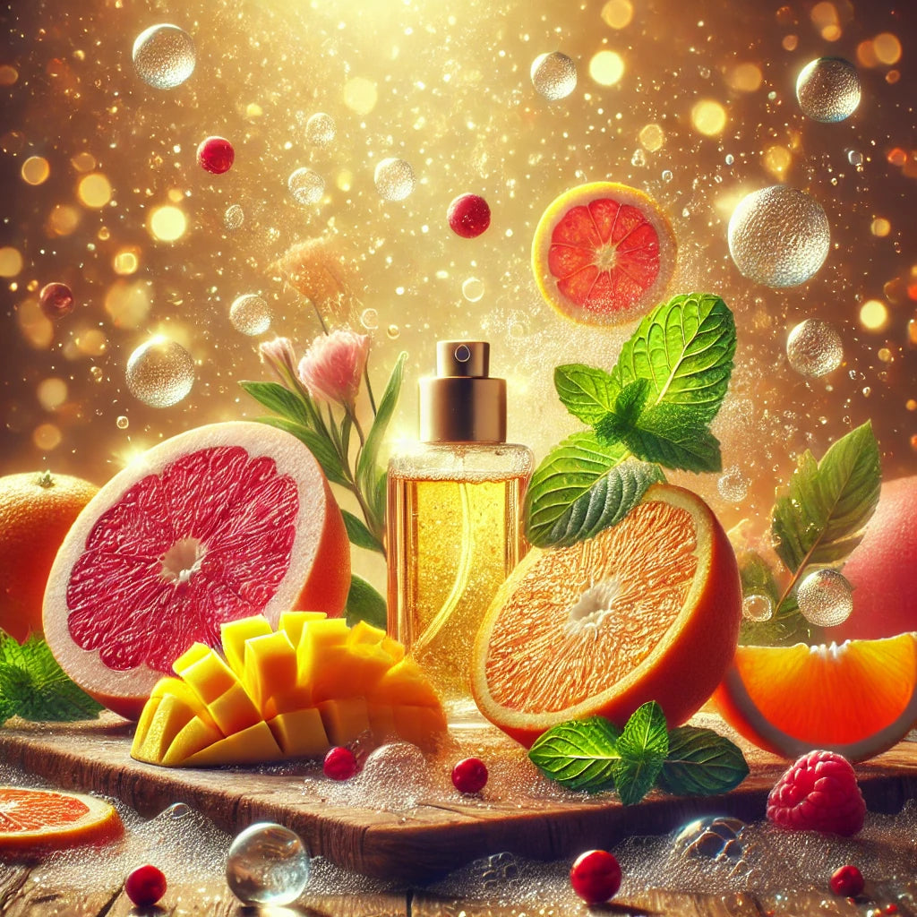 A bright, bubbly, and effervescent fragrance that radiates natural citrus freshness. Uplifting and invigorating, it bursts with zesty notes of orange and grapefruit, balanced by the sweetness of red berries. A heart of juicy mango, delicate rose, and refreshing mint adds a vibrant twist, while warm cedarwood and sun-kissed citrus provide a grounding, comforting finish.